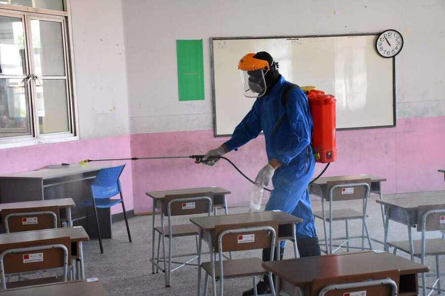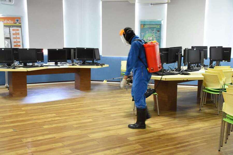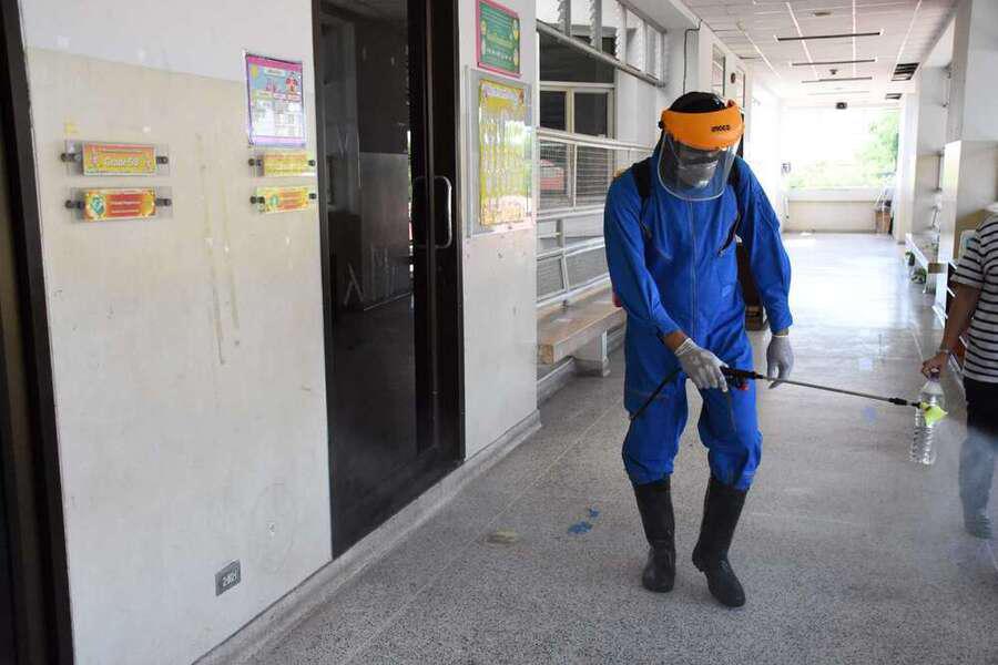 เทศบาลเมืองท่าโขลง ในการส่งเจ้าหน้าที่มาทำการฉีดพ่นน้ำยาฆ่าภายในและภายนอกอาคารเรียน เพื่อป้องกันการแพร่ระบาดไวรัสโควิด 19