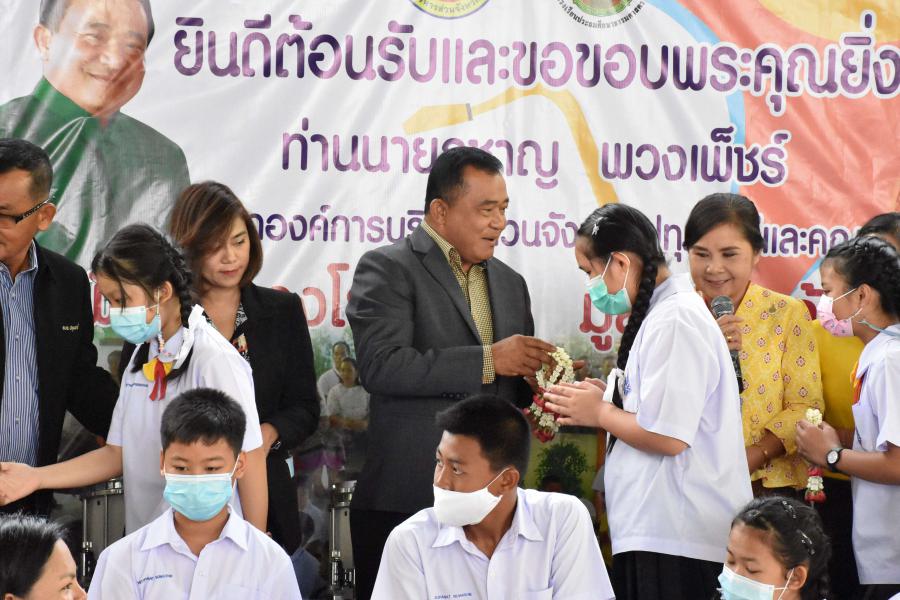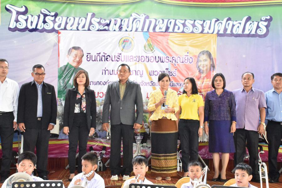 นายชาญ พวงเพ็ชร์ วันที่ นายกองค์การบริหารส่วนจังหวัดปทุมธานี เป็นประธานในพิธี มอบเครื่องดนตรีสากล วงโยธวาทิต (งบประมาณ 2,000,000 บาท) ให้กับโรงเรียนประถมศึกษาธรรมศาสตร์ ตามโครงการ สนับสนุนเครื่องดนตรีให้กับสถานศึกษาของ องค์การบริหารส่วนจังหวัดปทุมธานี