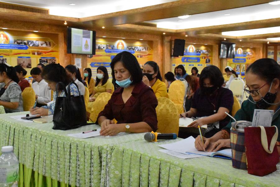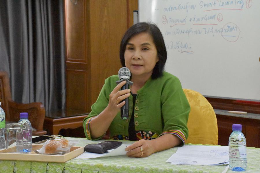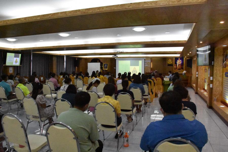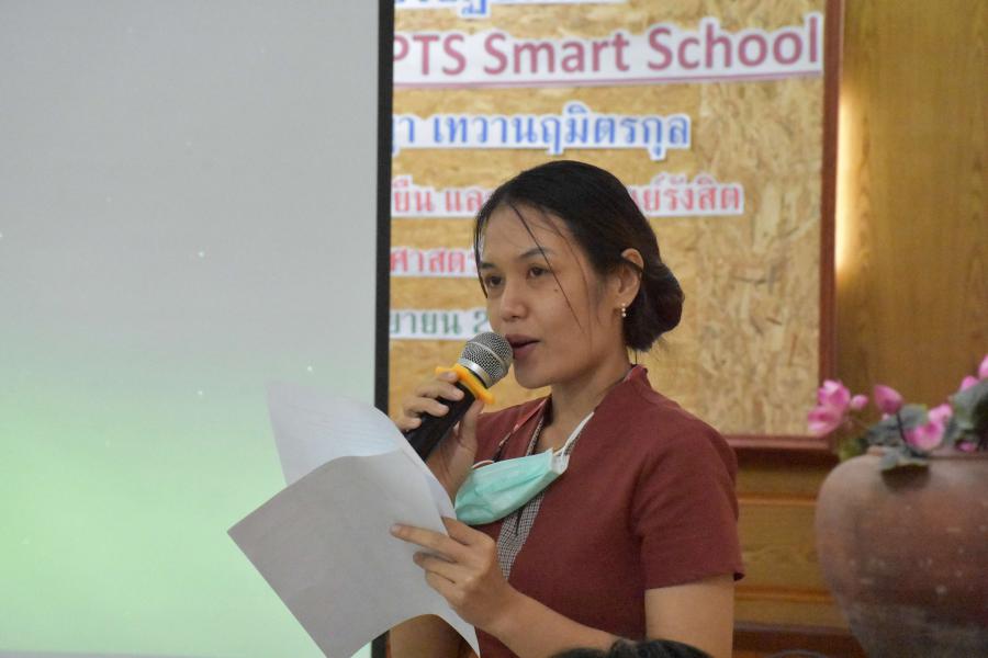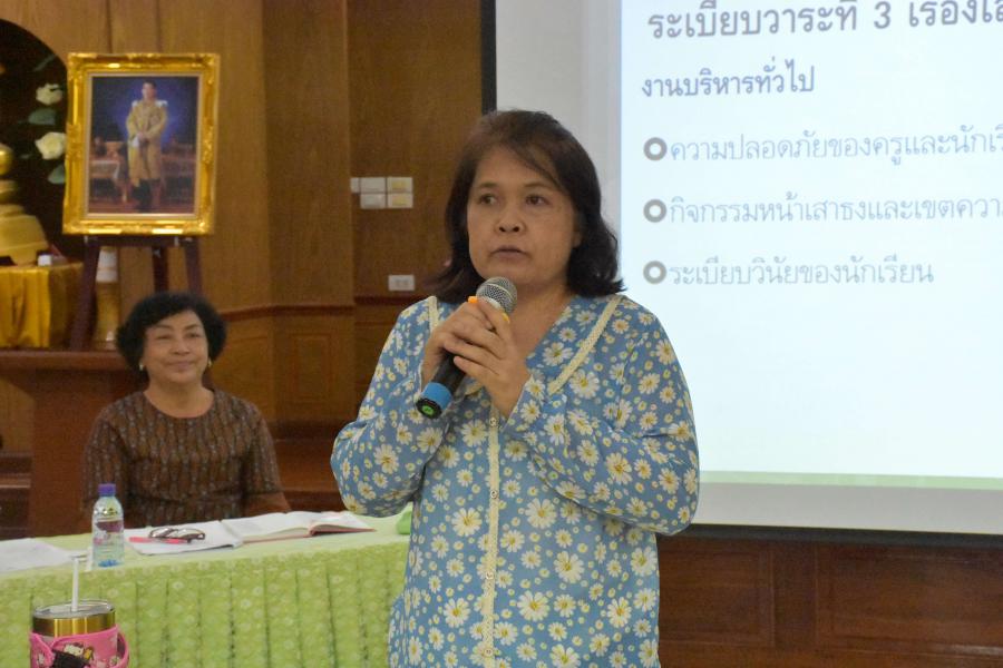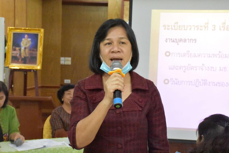 นางกาญจนา คล้ายพุฒิ ผู้อำนวยการโรงเรียนประถมศึกษาธรรมศาสตร์เป็นประธานในการประชุม ประจำเดือนตุลาคม ปีการศึกษา 2563
