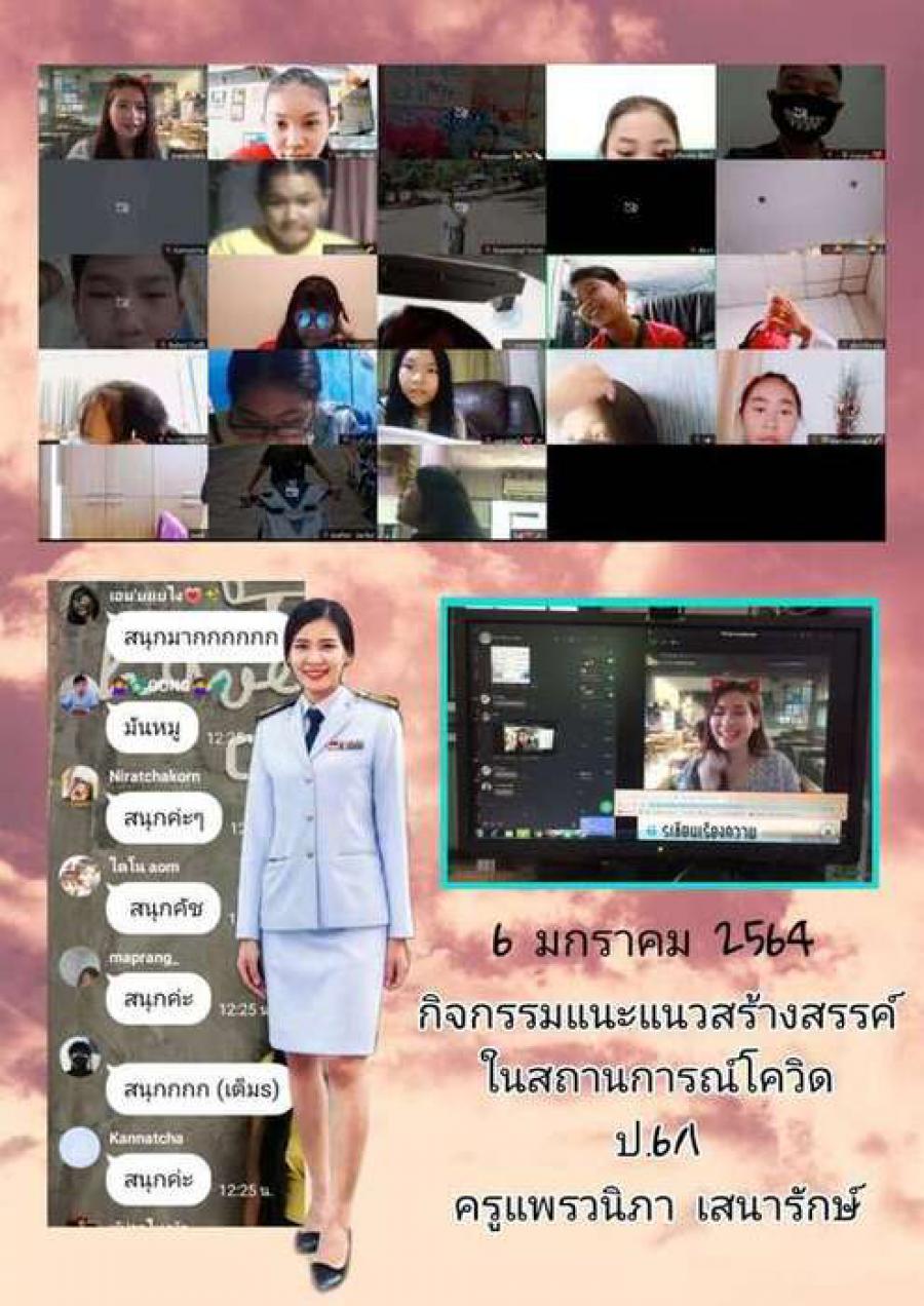 ภาพการจัดกิจกรรมการเรียนการสอนออนไลน์ ของครูและนักเรียนโรงเรียนประถมศึกษาธรรมศาสตร์ ในช่วงปิดสถานศึกษาด้วยเหตุพิเศษ จากสถานการณ์แพร่ระบาดของโรคติดต่อเชื้อไวรัสโคโรนา (Covid -19 )