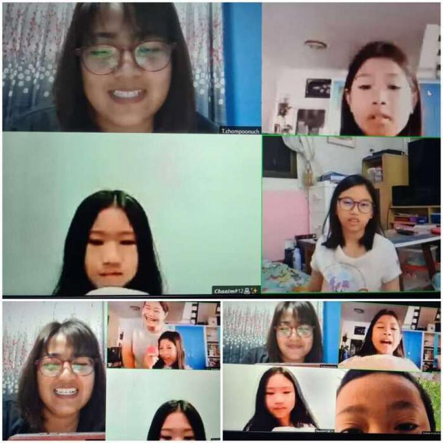 ภาพการจัดกิจกรรมการเรียนการสอนออนไลน์ ของครูและนักเรียนโรงเรียนประถมศึกษาธรรมศาสตร์
